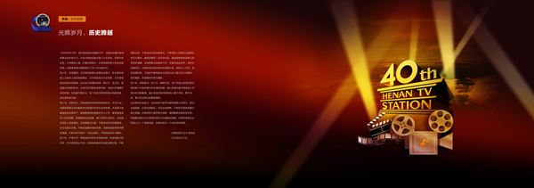 历史,是一条用岁月编织的彩带;历史,是一首用往事弹奏的华章;历史,是一幅用业绩描绘的画卷。转瞬40年,弹指一挥间,河南电视事业走过了一条从艰难起步到蓬勃发展,从繁荣昌盛到跨越升腾的崛起之路。40年的河南电视事业发展通途被时间编织的彩带环绕,被往事弹奏的华章颂扬,被业绩描绘的画卷辉映。己丑之年,9月中旬,金风送爽,情涌心田,河南电视台迎来了建台40周年的大喜日子。